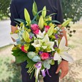 Букет розовых анемонов и орхидей