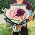 Букет из роз и фиолетовых гвоздик