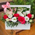 Альстромерии и розы в ящичке