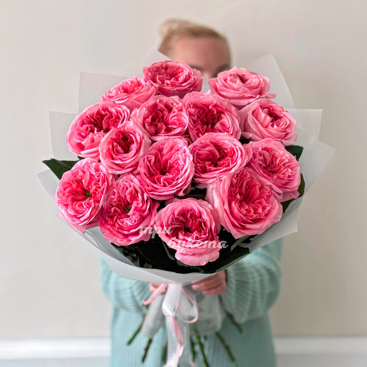 Букет из 15 пионовидных роз Пинк Экспрешн