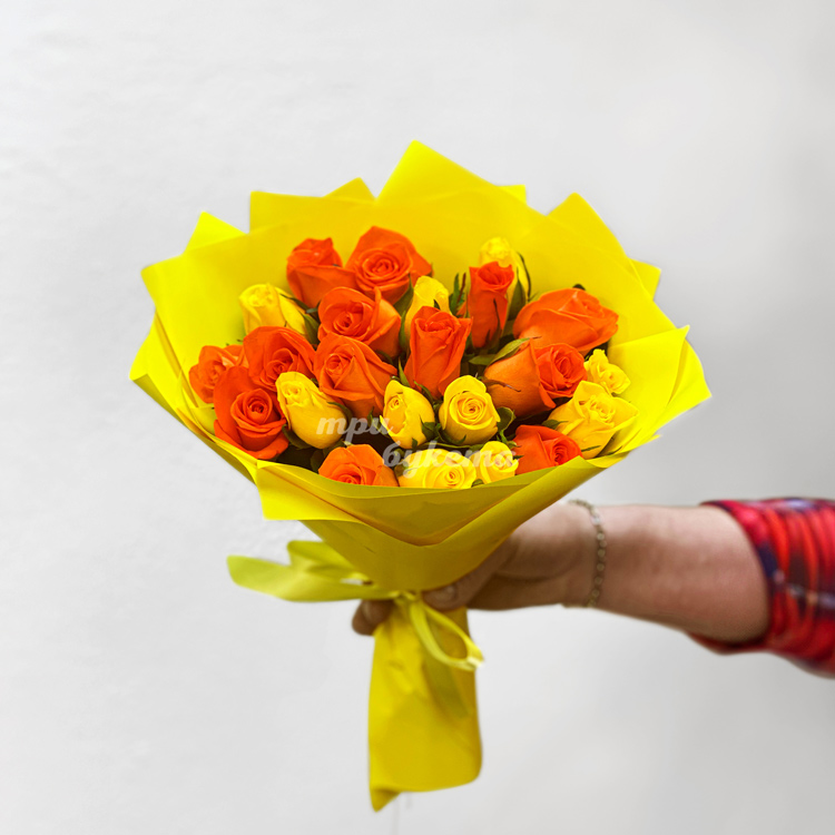 Букет из желтых и оранжевых роз