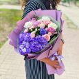 Букет нежных роз, гвоздик и маттиол