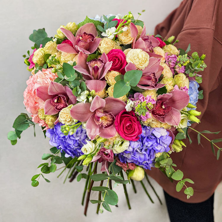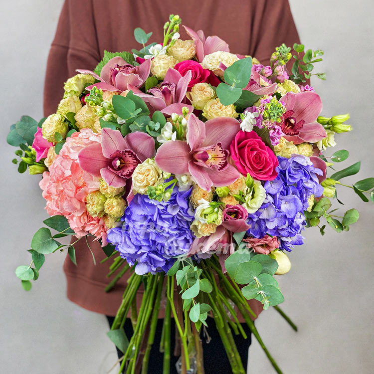 Букет пышных гортензий с орхидеями