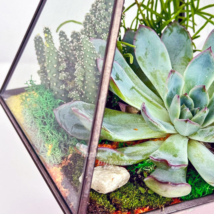 Флорариум с кактусом, мхом и эхеверией