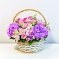 Гортензия, эустомы и розы в ящичке