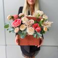 Хризантемы и желтые орхидеи в ящичке