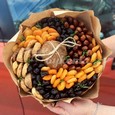 Коробка кремовых роз и бордовых орхидей