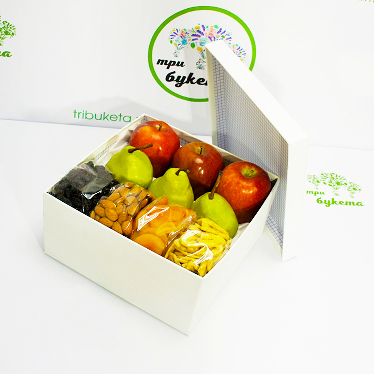 Коробочка с яблоками и сухофруктами