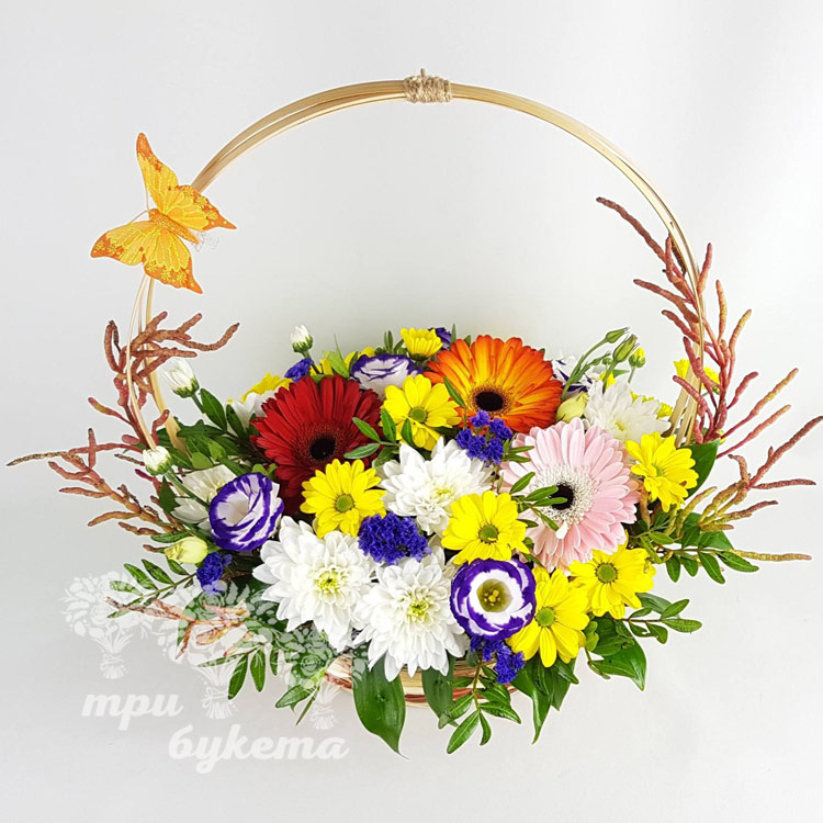 Корзина гербер и хризантем