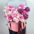 Корзина из розовых роз и 55 клубник