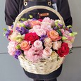 Корзина розовых куст. роз с гипсофилой