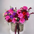 Красные розы, ранункулюсы и анемоны в коробке