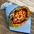 Кустовые розы и клубника в коробке