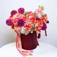 Мини-коробка нежных роз, маттиол и гвоздик