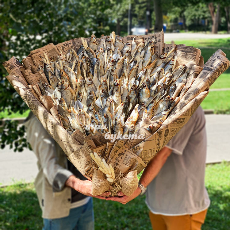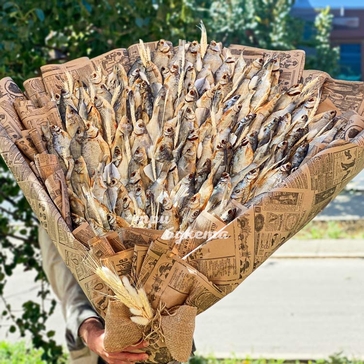 Огромный букет из сушеной рыбы