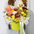 Шляпная коробка оранжевых французских роз