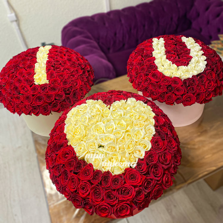 Шляпные коробки роз с признанием в любви
