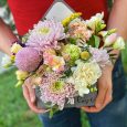 Ящик хризантем и розового лагуруса